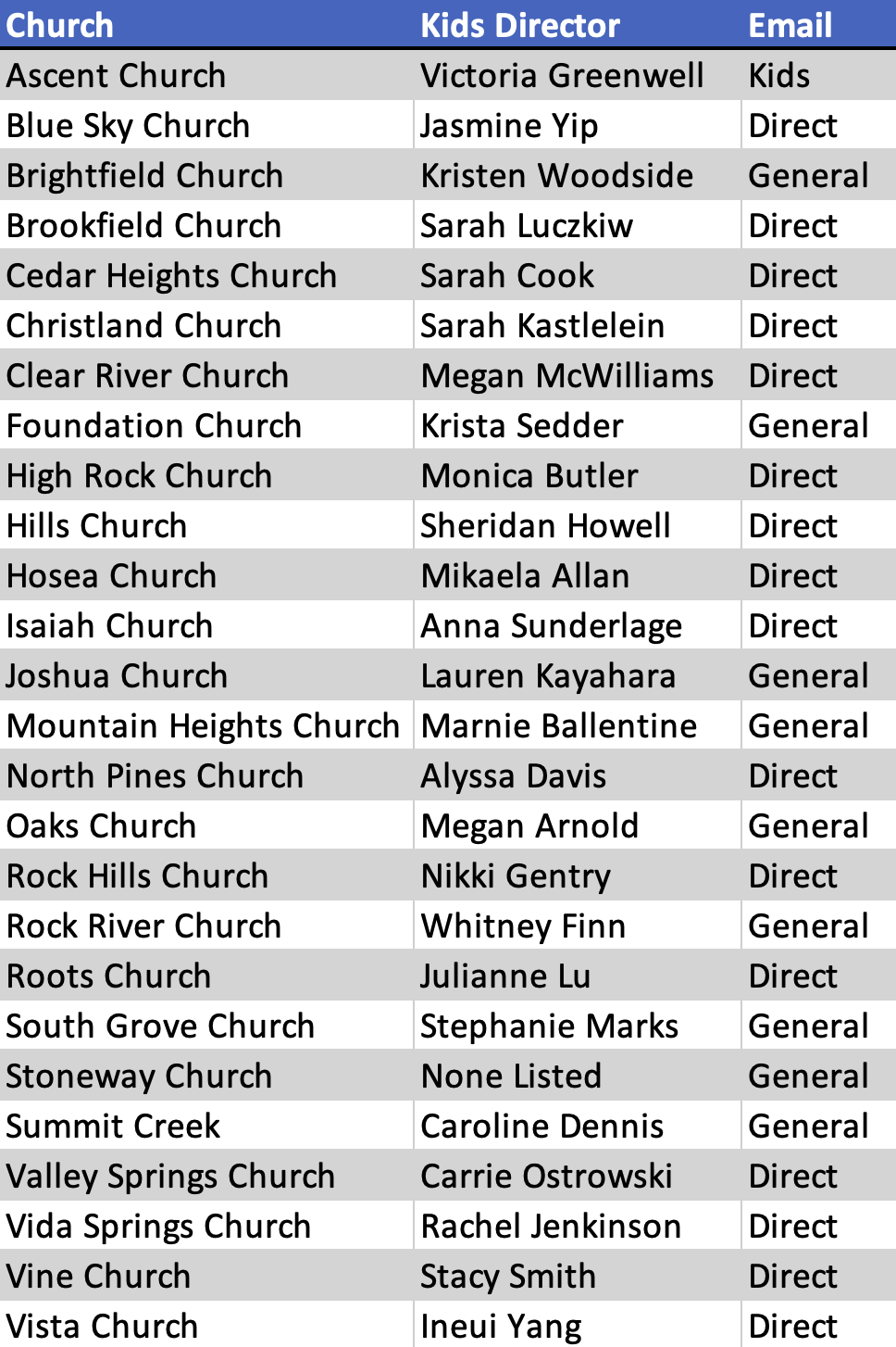 On Thursday, June 23rd, 2022, at approximately 3:15 PM Pacific time, I sent the following letter to the Kids Directors across the Network. Ten of the Twenty-six Network Churches do not publish an email address for the Kids Director, and so I have had to resort to a more general email address (in most cases “info@” or “contact@”, but in the case of Ascent Church, I found “kids@”).